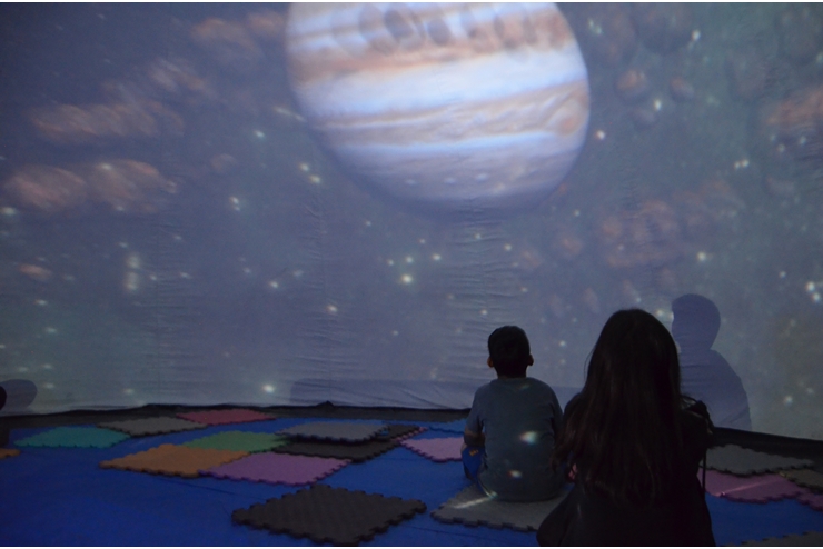 Bitlis’in Adilcevaz ilçesinde belediye tarafından uzay küresi adıyla kurulan çadırda çocuklara yönelik astronomi ve uzay bilimlerini anlatan planetaryum gösterisi düzenlendi.