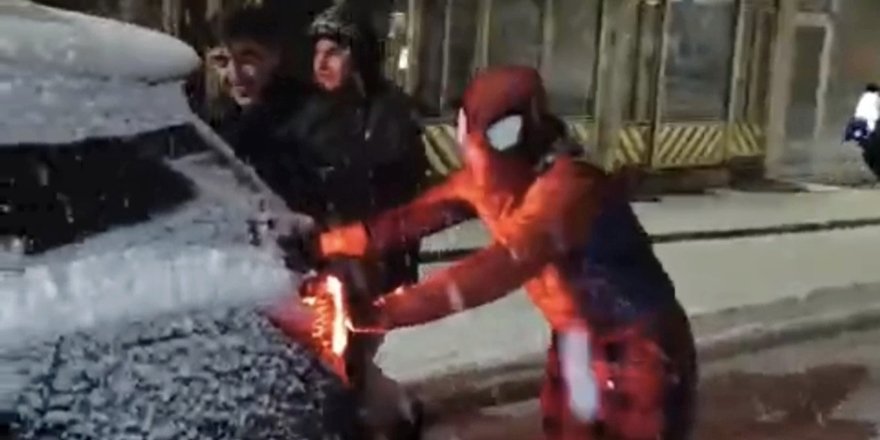 Karda Mahsur Kalan Sürücünün Yardımına Örümcek Adam Yetişti